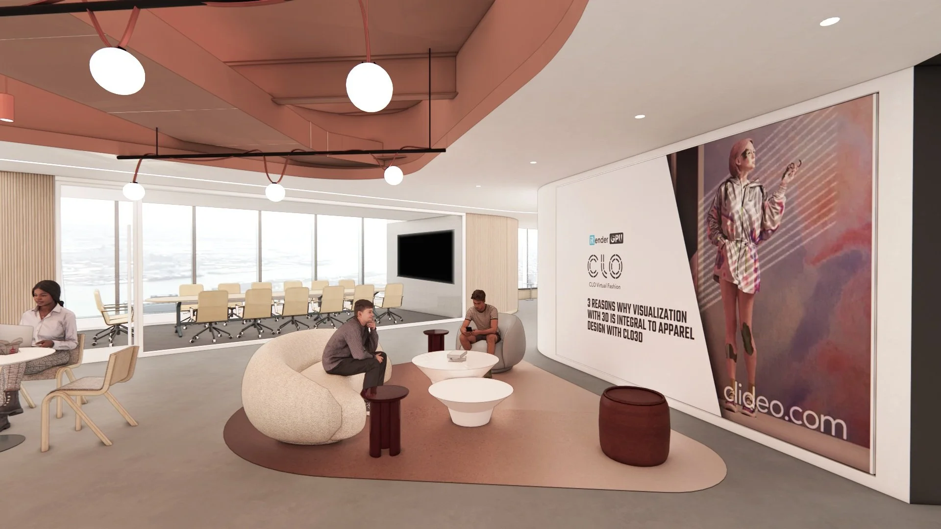 CLO marked a groundbreaking interiors workplace project presented in an immersive 270-degree environment at the NBBJ NYC office. I utilized this presentation format to guide the client through the concept, planning strategy, and 3D immersive 360 views, enabling us to collectively experience the space and navigate through its different zones.